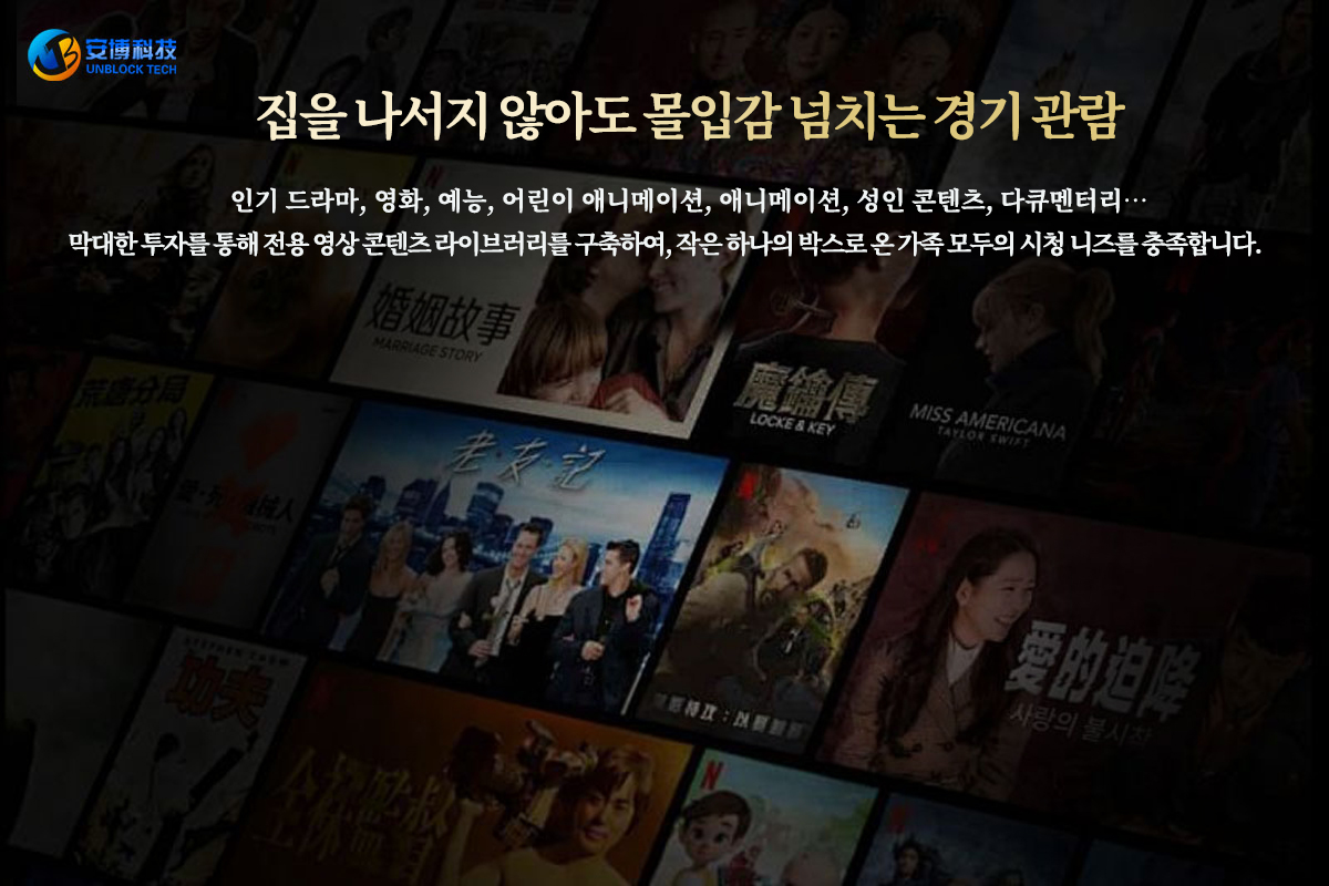 Unblock Tech UBox12 홈시어터 박스는 TV 시리즈, 영화, 버라이어티 쇼, 어린이 애니메이션, 애니메이션 및 성인 콘텐츠 등 끝없는 엔터테인먼트를 제공하는 개인 영화관 경험을 선사합니다.
