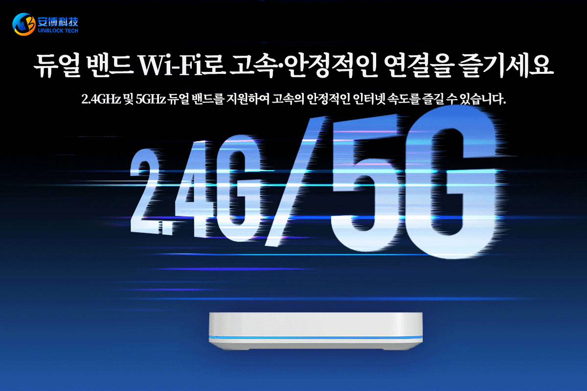 ▶️언블록 테크 UBox12 안드로이드 TV 스트리밍 박스는 듀얼 밴드 Wi-Fi를 지원하여 2.4GHz와 5GHz 대역을 모두 사용하므로 빠르고 안정적인 인터넷 연결을 제공합니다. 고속 광대역 속도로 끊김 없는 스트리밍, 게임, 웹 브라우징을 즐기며 버퍼링이나 끊김 없이 최적의 엔터테인먼트 경험을 만끽하세요.