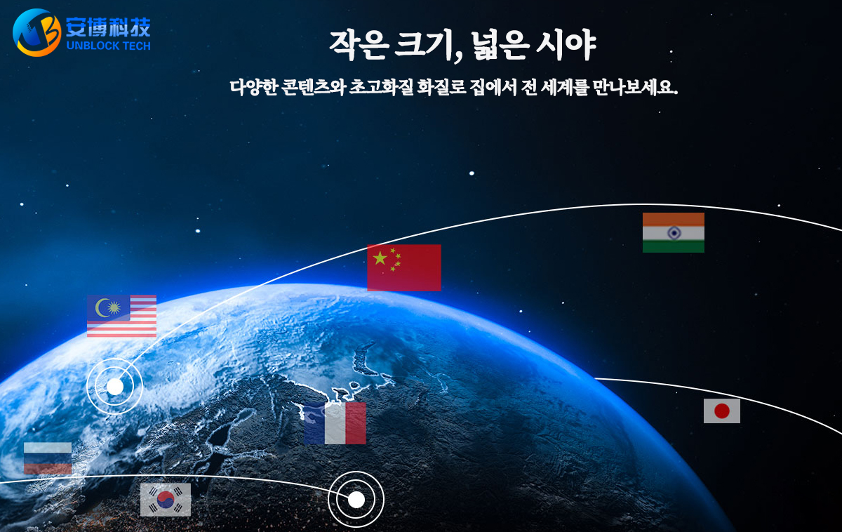 Unblock Tech UBox12 블루투스 TV 박스는 전 세계 30개국 이상, 200개 이상의 노드를 통해 글로벌 CDN 노드 가속 기능을 제공합니다.