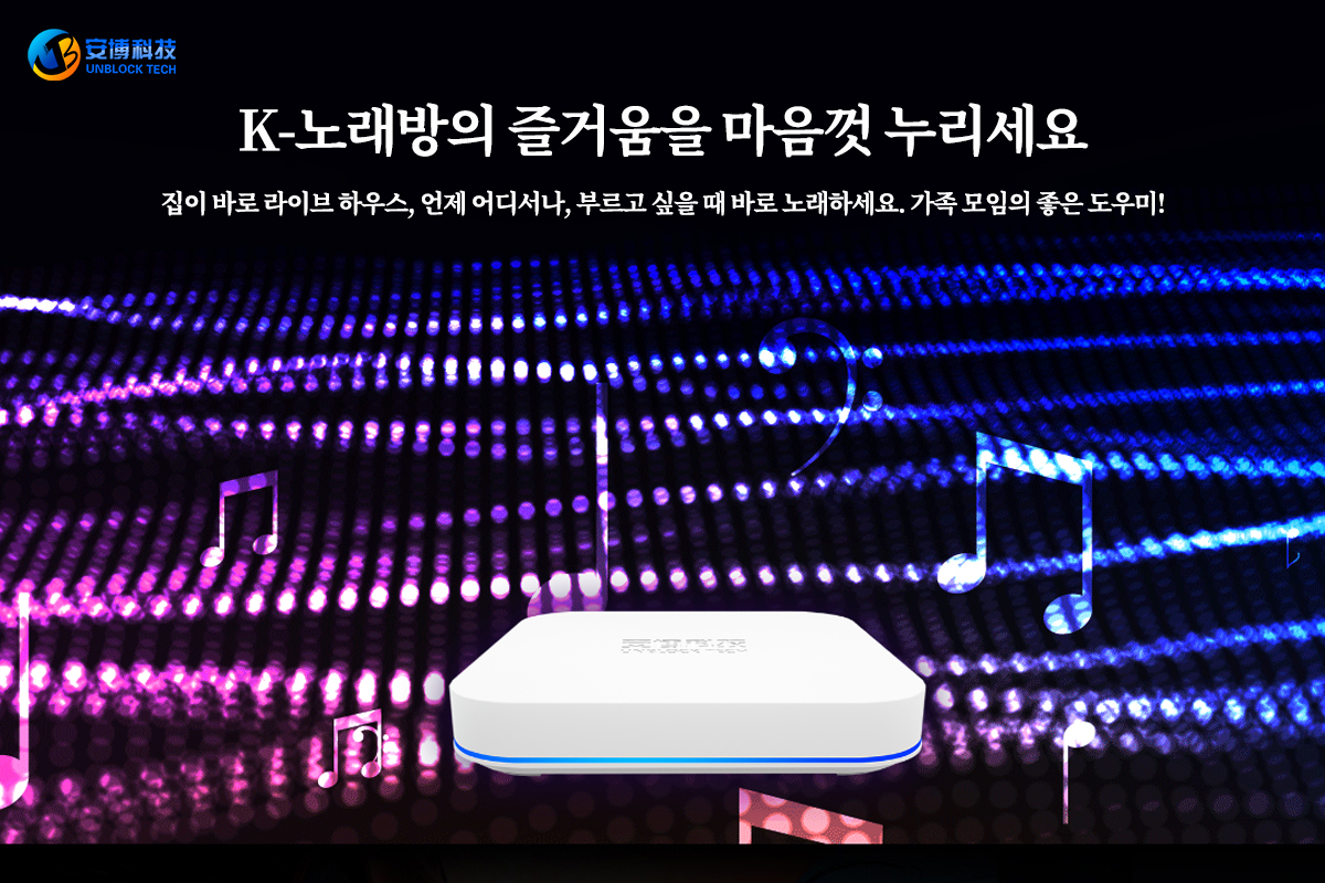 Unblock Tech UBox12 안드로이드 미디어 박스는 당신의 집을 가족 모임에 딱 맞는 라이브 노래방으로 바꿔줍니다.
